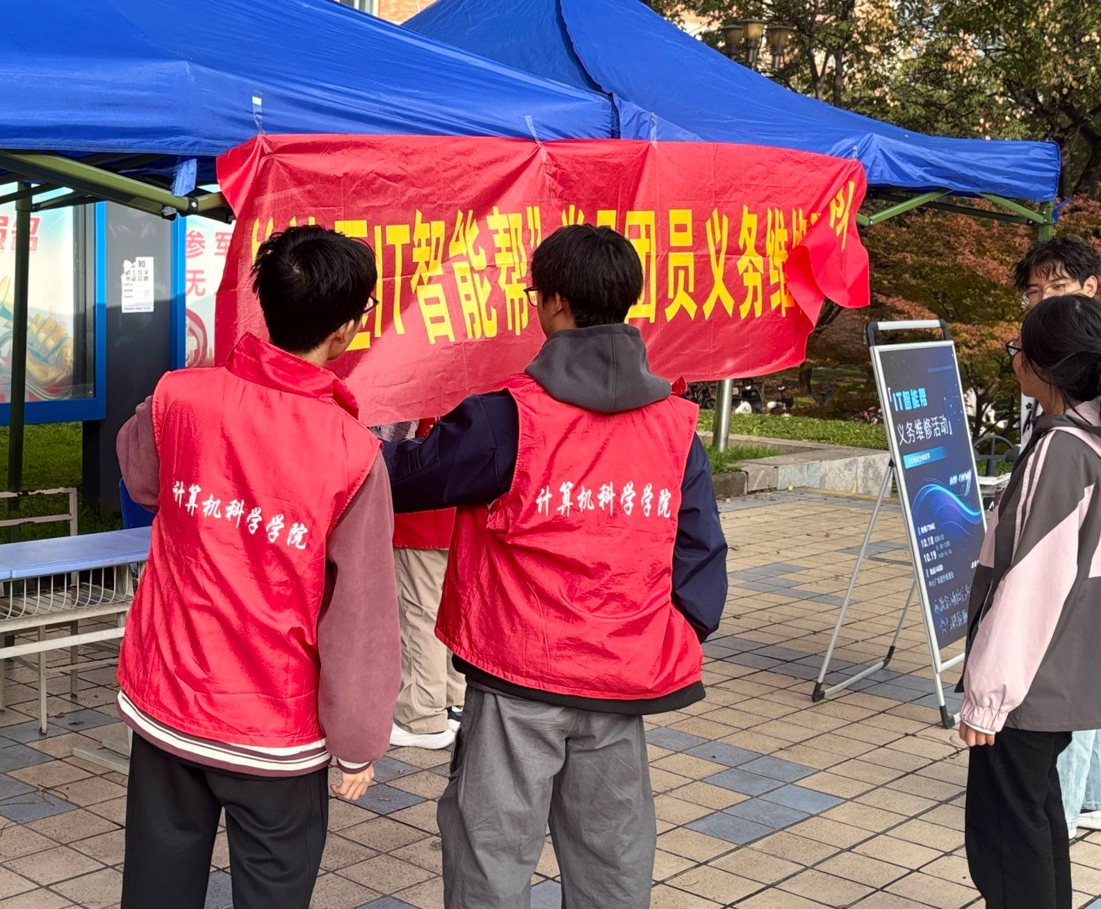 2025年10月18日至19日,公司临潼校区中心广场暖意涌动——“美加墨世界杯官方网站社区IT智能帮”党员团员义务维修服务队在此开启暖心公益服务。活动以“服务师生、实践育人”为核心,既通过IT设备维修展现员工在员工社区建设中的主体力量,更以“学以致用、以用促学”为路径,让志愿服务精神与雷锋精神交响融合,帮助公司青年志愿者在解难题、办实事中同步提升思想境界与综合能力。