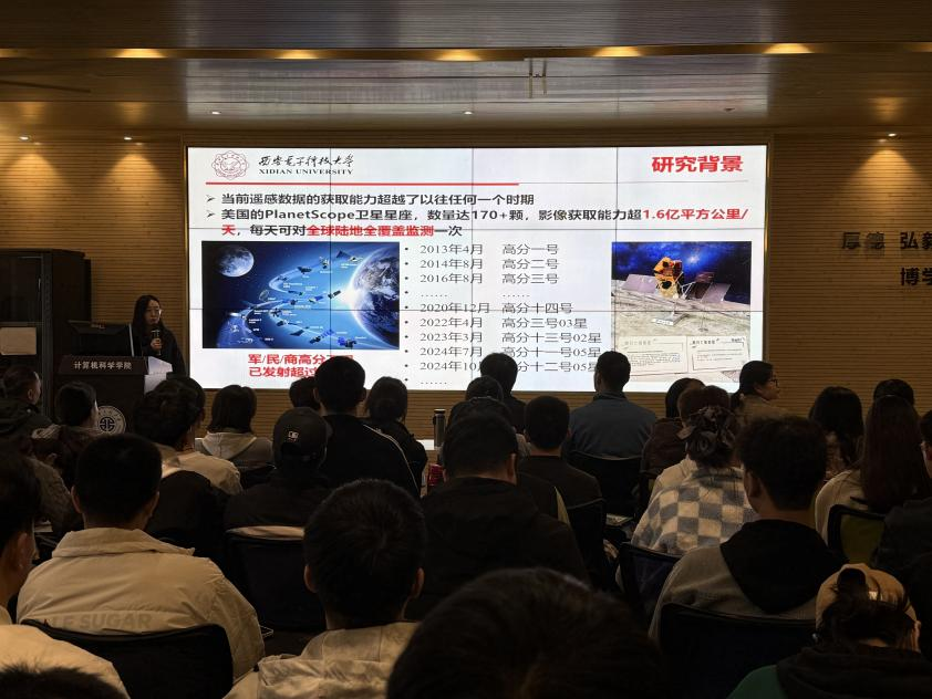报告会开始前,赵勇进代表公司对王笛教授的到来表示热烈欢迎,并简要介绍了她在遥感影像分析与可信智能视觉领域的突出学术贡献。在报告会上,王笛教授系统介绍了其团队在高分辨率遥感影像精准目标检测方面的最新研究成果,重点阐释了层级视觉语言表征、检索增强知识生成、视觉证据溯源、置信度引导检测及反馈驱动持续学习等关键技术,并展示了相关方法在多源信息融合、零样本指代定位、变化检测问答等实际应用场景中的显著成效,为师生呈现了一场高水平的学术盛宴。