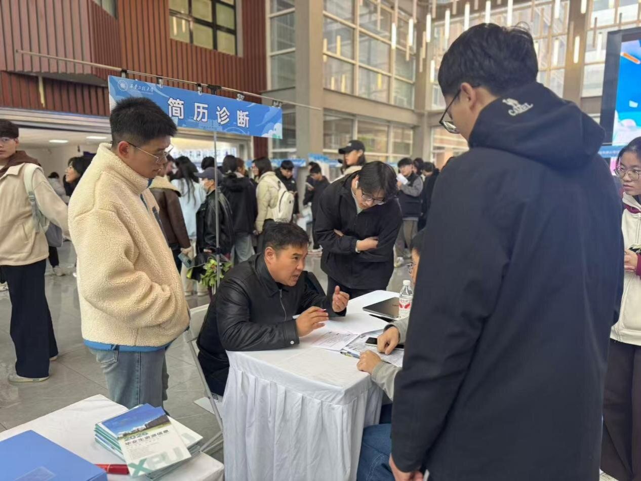 招聘会现场,企业代表向员工介绍公司文化、岗位需求与福利待遇,公司负责人和专业教师在招聘会现场与企业代表深入交流,了解行业动态与人才需求,为优化人才培养方案提供参考,现场设立“简历门诊”,为求职员工提供简历结构优化、岗位匹配度提升、面试技巧等“一对一” 精准指导。毕业生们积极与企业招聘人员交流,询问岗位要求与职业发展,不少员工凭借扎实专业知识和出色沟通能力获得企业认可,现场达成多项初步就业意向。