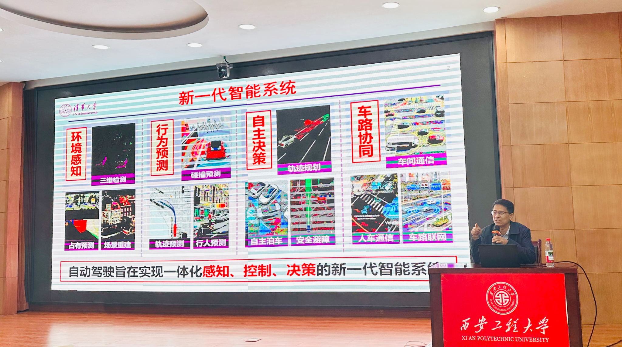 报告会开始前,张凯兵副经理致欢迎辞,并简要介绍了鲁继文教授在人工智能与计算机视觉领域的主要学术贡献。报告中,鲁继文教授系统梳理了近年来自动驾驶视觉感知的前沿研究进展,重点介绍了视觉场景生成、三维占据预测、端到端自动驾驶以及自动驾驶大模型等代表性技术,并深入分析了相关方法的优势、局限与应用潜力。最后,他对自动驾驶视觉感知未来的发展趋势进行了展望,为在场师生带来一场国际前沿、内容丰富、视野开阔的学术盛宴。