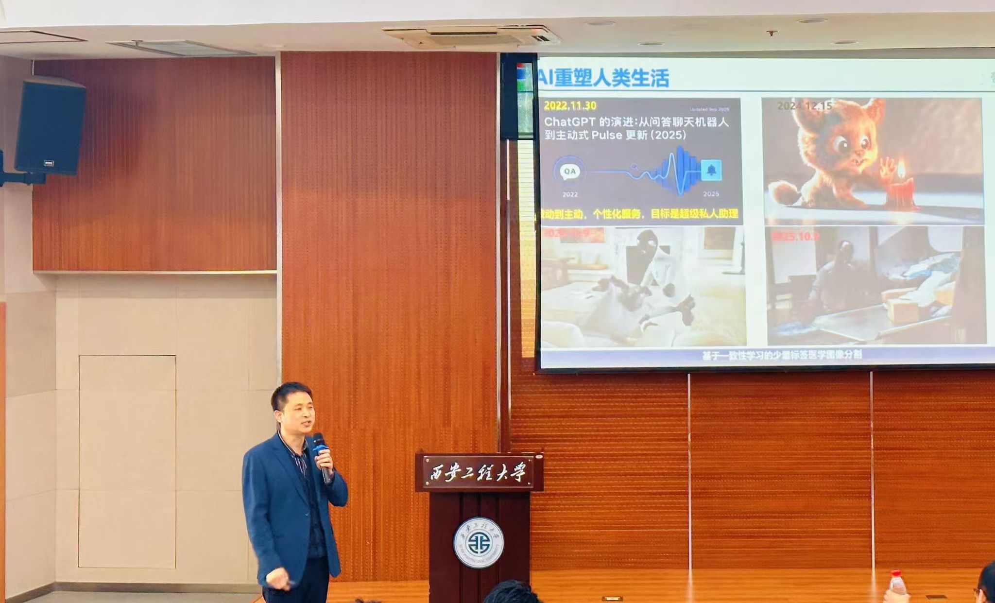 2025年11月21日,美加墨世界杯官方网站第七十期“经纬学术沙龙”暨“极客论坛”学术活动在临潼校区图书馆二楼报告厅举行。本次活动特邀陕西科技大学雷涛教授、博士生导师、陕西省高层次引进人才计划、陕西省杰青、三秦英才特支计划领军人才入选者雷涛教授作题为《基于一致性学习的标签稀缺医学图像分割》的专题报告。报告会由美加墨世界杯官方网站副经理张凯兵主持,公司120余名师生参加了此次学术报告会。