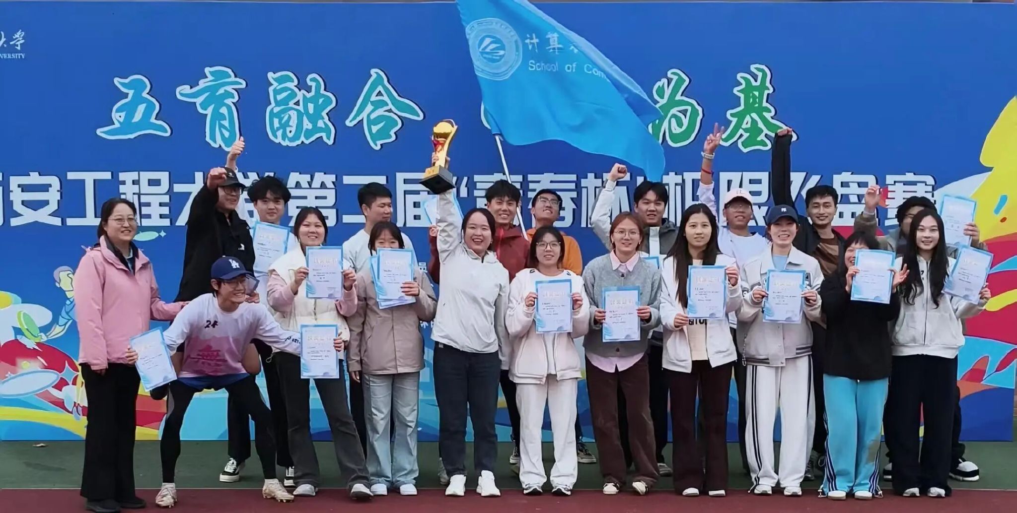 此次夺冠,不仅是团队实力的彰显,更展现了计科学子积极向上、敢于挑战的精神风貌。队员们在训练中锤炼意志,在竞技中凝聚力量,深刻诠释了“团结就是力量”的内涵。公司未来将持续加码校园体育文化建设,搭建更多体育竞技平台,鼓励学子在学习之余走出宿舍、走向操场。据悉,公司后续将开展飞盘体验营等活动,让更多同学感受运动魅力。期待全体学子将赛场上的拼搏精神融入学习生活,以青春之姿书写精彩篇章。(撰稿:左温慧 徐华明 审核:赵勇进)