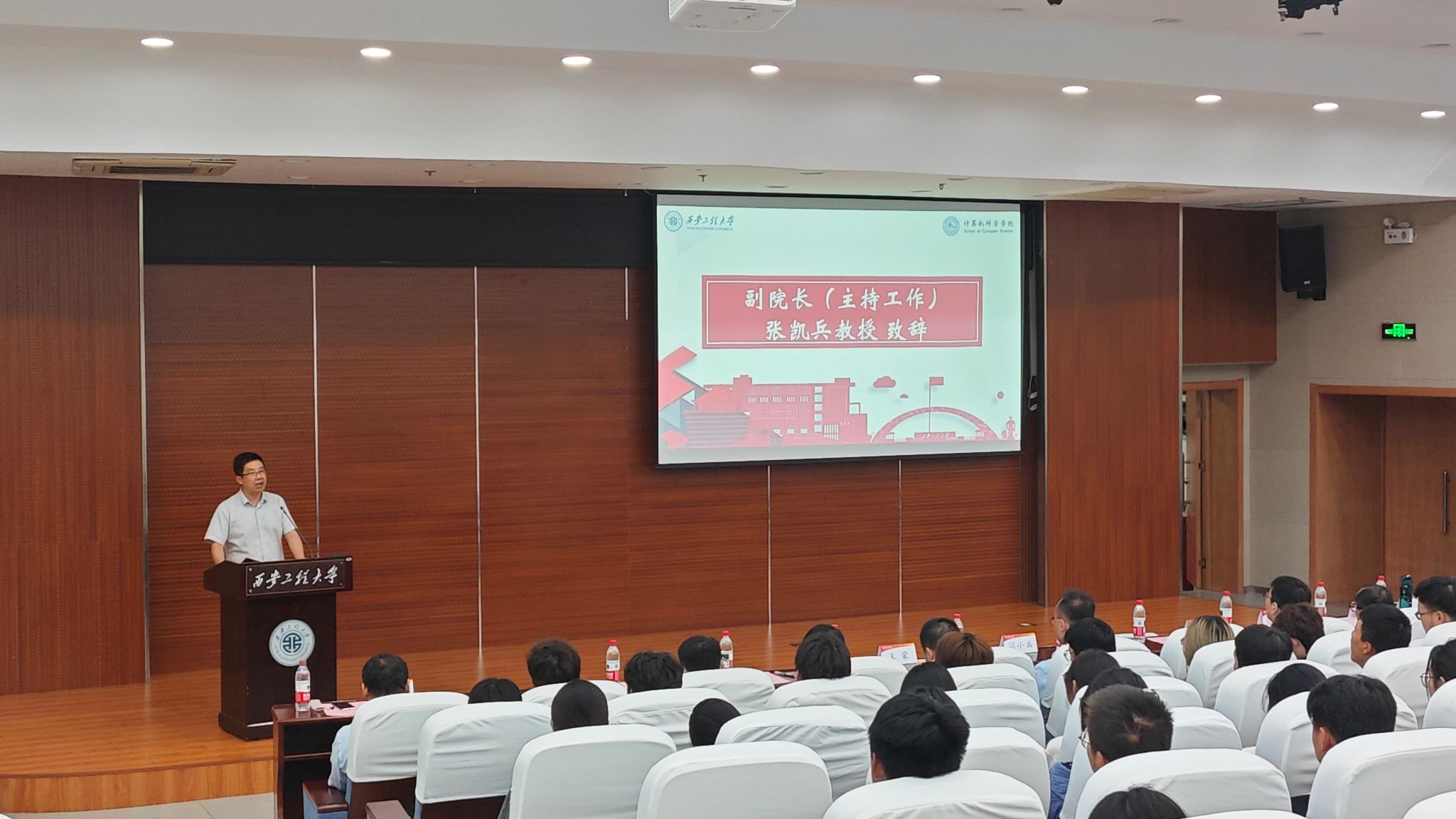 大会伊始,张凯兵教授致辞,他代表公司全体师生,向新加入的莘莘学子致以最热烈的欢迎。随后,他以“筑梦、追梦、圆梦”为核心主题,向新生们提出了三点殷切期望:一是锚定方向,夯实专业根基,广泛涉猎,明确人生目标;二是砥砺前行,面对技术快速更新与挑战,保持坚韧不拔,勇于探索,不怕犯错;三是践行知行合一,勇担时代使命,将个人梦想融入国家发展的洪流中,紧扣时代脉搏,将技术创新转化为推动社会进步的强劲动力,并衷心祝愿同学们能以梦为马,不负青春韶华,学有所成,梦想璀璨照进现实。