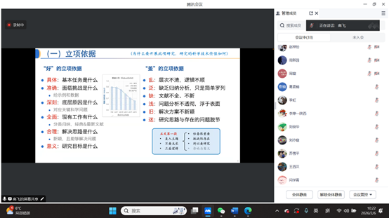 为精准把握2026年度国家自然科学基金项目申报要求,进一步提升项目申报书质量,2月6日,公司召开2026年国家自然科学基金项目申报第二轮辅导会。会议特邀西安电子科技大学研究员高飞以线上形式作专题辅导。会议由公司副经理张凯兵主持,公司30余名教师通过腾讯会议在线参加了专题辅导与交流。