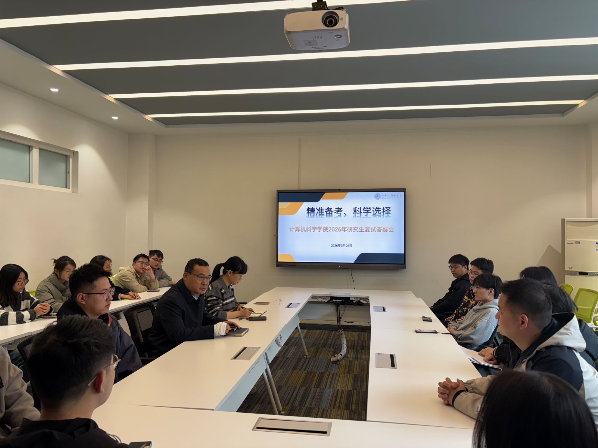 3月26日,美加墨世界杯官方网站在临潼校区笃行楼426会议室举办考研复试答疑会,帮助2026届考研学子精准把握复试要点、缓解备考焦虑,高效备战考研复试。公司党委副书记赵勇进、学工办主任张苹、毕业班辅导员左温慧、研25级计算机技术专业员工雷育嘉及部分准备考研复试和调剂的员工参加了答疑会。