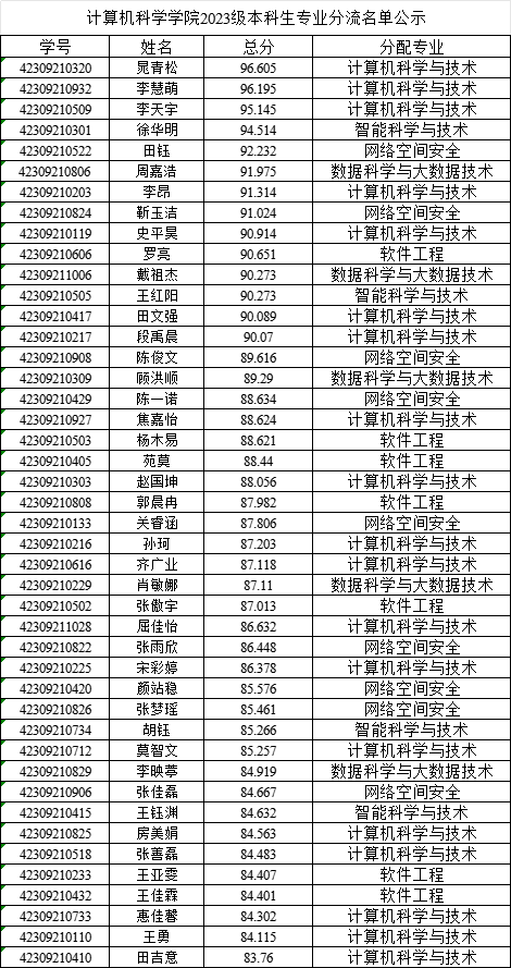 据《关于印发<美加墨世界杯官网本科生大类招生专业分流及转专业管理办法>的通知》(西工程大教字[2025]19 号)等文件要求,公司制定并下发了《美加墨世界杯官方网站大类招生专业分流实施细则》。经个人填报志愿、工作小组审核排队成绩、专业分流领导小组对分流结果进行审议,拟分配晁青松等327名2023级员工至计算机科学与技术等专业,现将分流结果及个人成绩等信息予以公示。(详见附表)