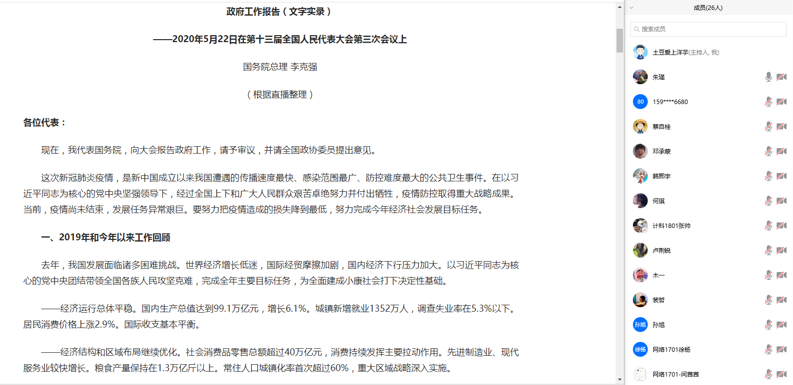 美加墨世界杯官方网站员工党员专题学习2020年政府工作报告