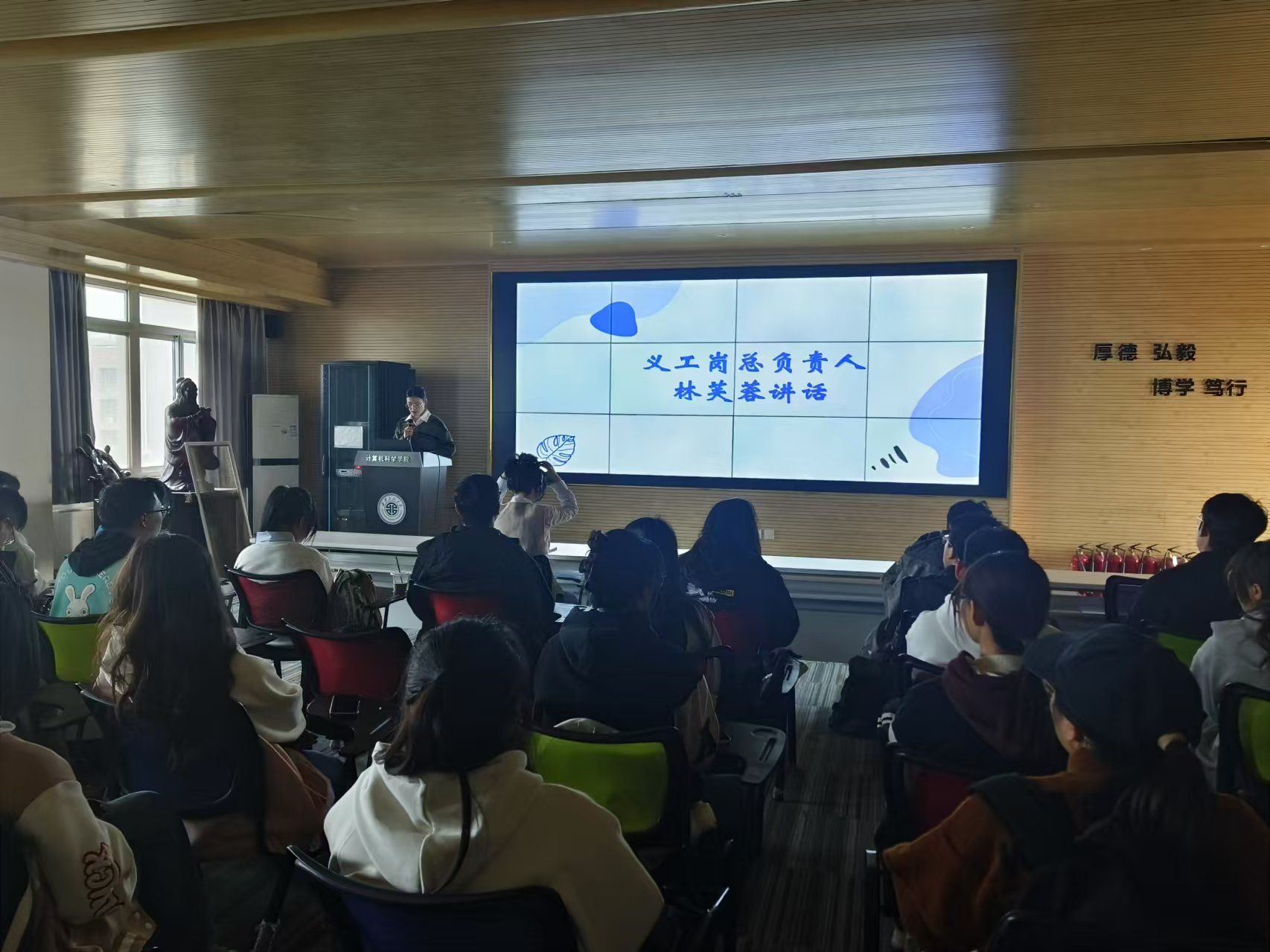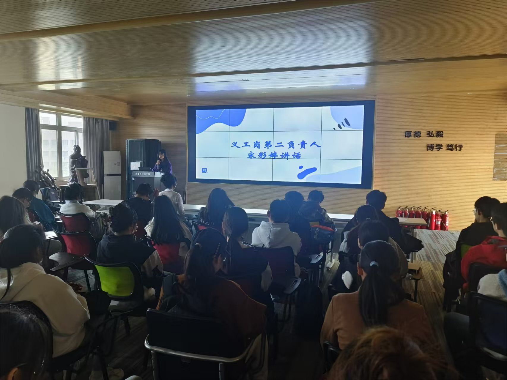 接着,义工岗第二负责人宋彩婷对各年级受助员工义工岗工时的完成情况做了总结,指出了工作中存在的不足和今后整改的措施,提出了明年对各年级义工岗负责人及受助员工参与义工岗活动的要求。