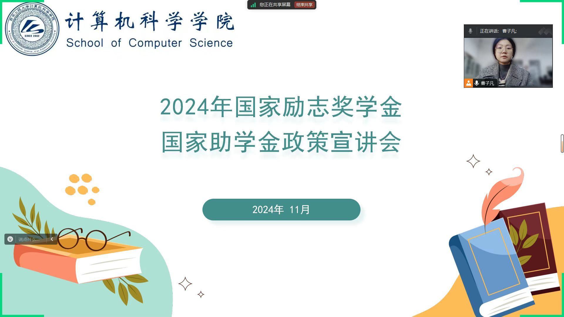 为确保国家资助政策的精准实施,激励家庭经济困难员工勤奋学习、努力进取,美加墨世界杯官方网站于2024年11月6日举办了2024年国家励志奖学金及国家助学金政策宣讲会。本次大会在腾讯会议上举行,由公司2023级兼资助辅导员曹子凡主讲,2023级、2022级和2021级班干部和宿舍长参与。她全面解读了国家励志奖学金及国家助学金的申请条件、资助标准及评审流程,确保员工对政策有深入的理解和正确的认识。