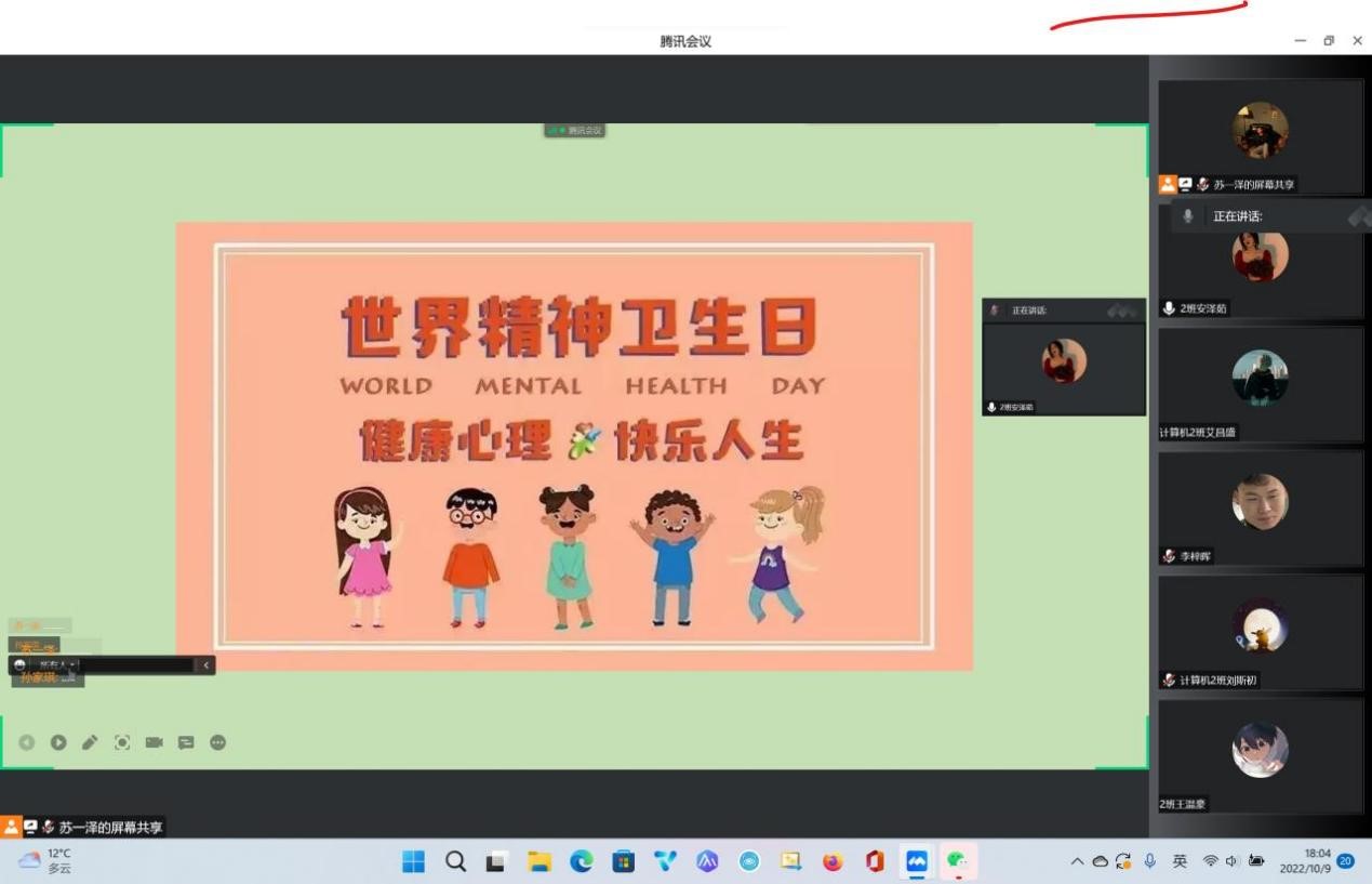 10月10日,美加墨世界杯官方网站各年级以班级为单位在线上以腾讯会议的形式组织开展了10.10“世界精神卫生日”心理健康主题班会,班会主要由各班前期受过校心理健康教育中心培训的心理委员主持,各年级班主任、辅导员和心理辅导员积极参会。