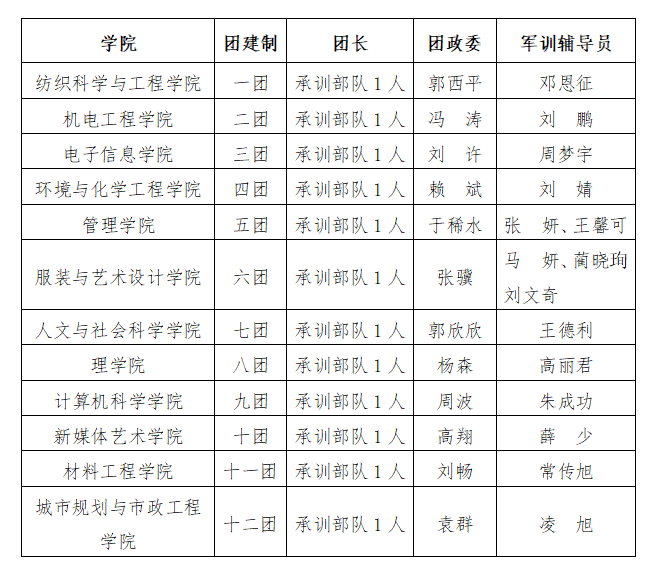 10. 各公司党委副书记作为各军训团政委,为各团军训工作提供有效保障,配合团长做好员工管理和思想政治教育。各公司新生辅导员作为军训辅导员全程跟训。