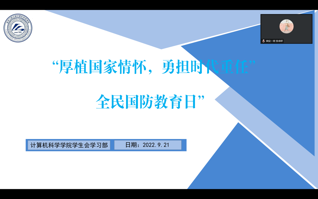 没有国防观念和忧患意识的民族,是没有希望的民族。今年9月21日,是第二十二个全民国防教育日。作为新时代里的新青年更要进一步加强国防教育,振奋民族精神,激发大家的民族自豪感和国家荣誉感。