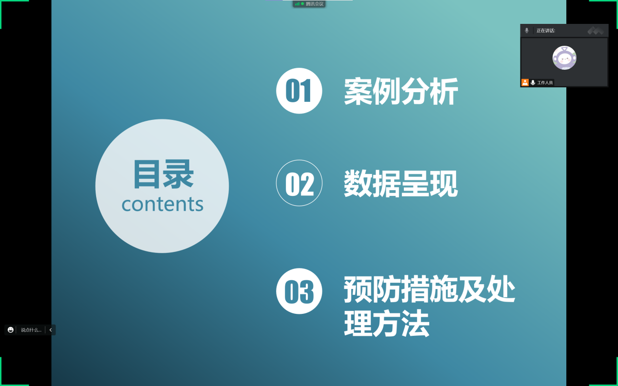 各年级辅导员首先通过交通典型案例,紧密结合《中华人民共和国交通法》等文件开展教育活动,张鑫结合相关交通安全规范分析了导致老员工出现交通安全事故的原因并提出对策,指出提高老员工安全意识的必要性。此外,还向同学们分享交通安全事故的相关数据,以加强同学们对交通安全的重视,并分别对校内、校外的交通安全问题,给同学们提出建议。