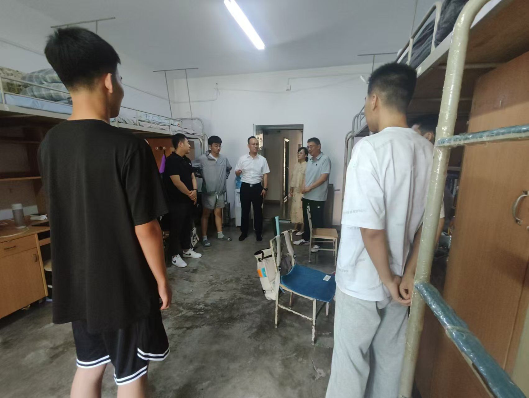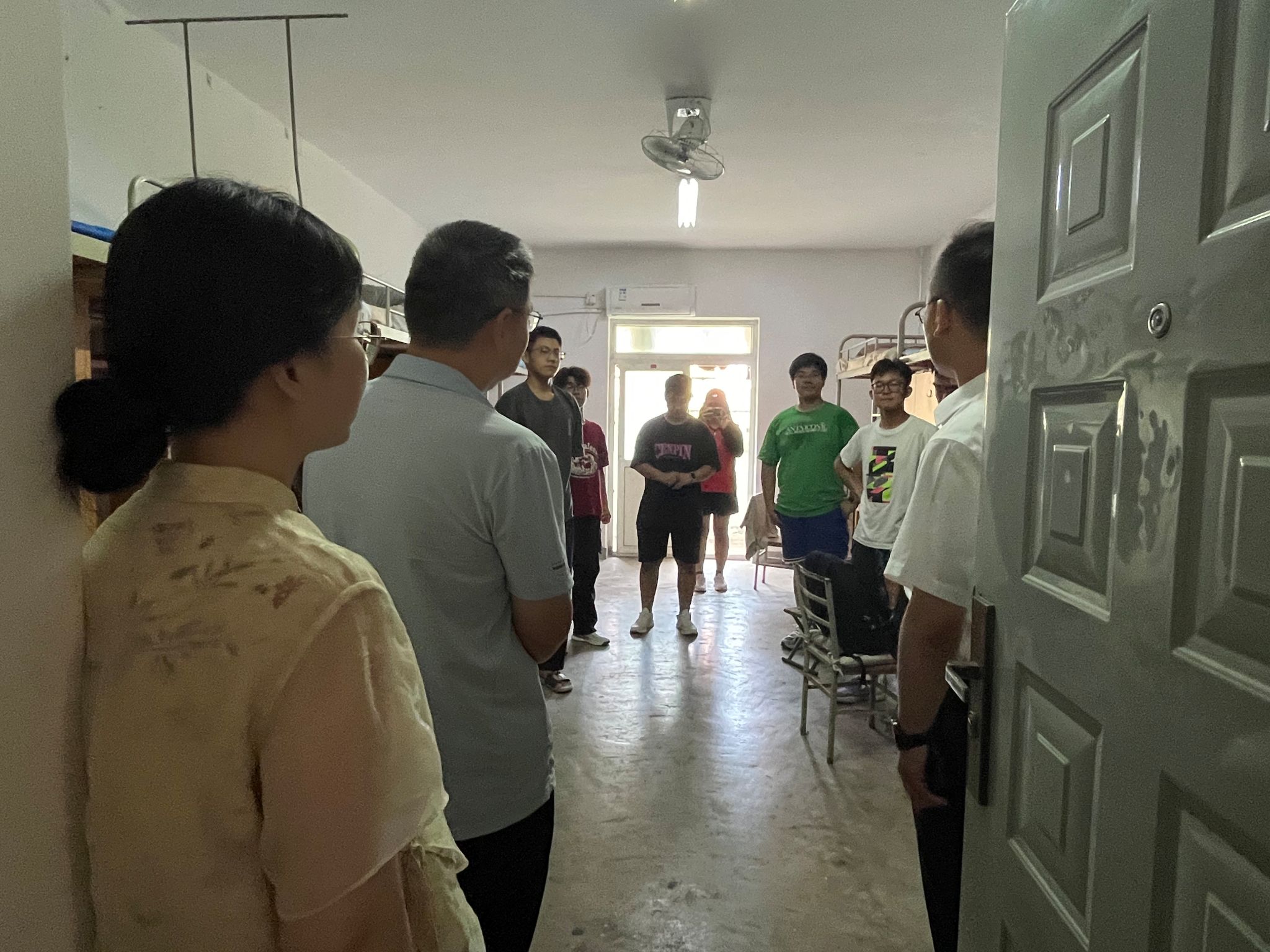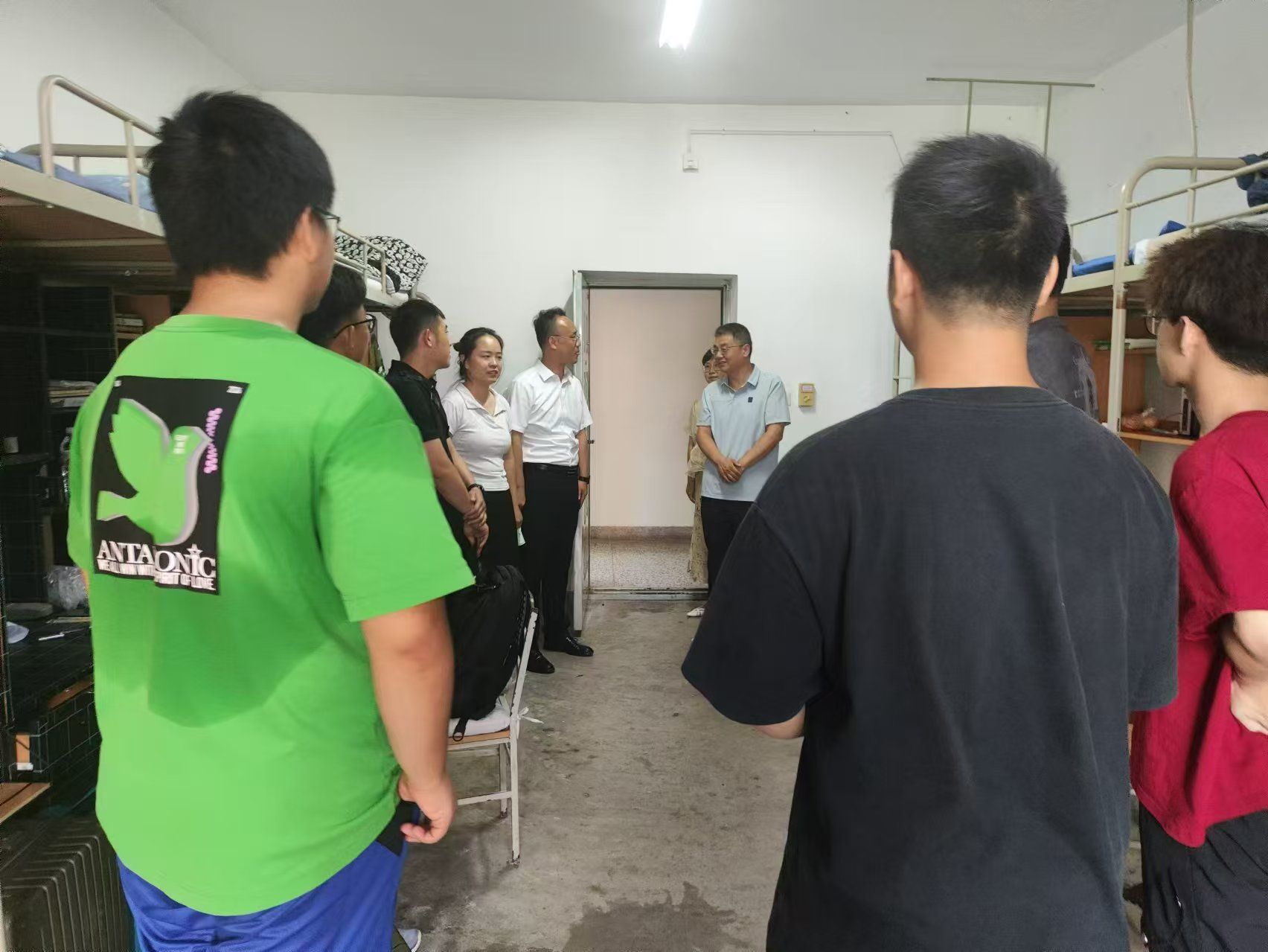 为了进一步做好新生接待工作,了解员工在校生活状况,帮助新生更快适应了老员工活、创造一个良好的校园生活环境,8月29日下午2点,美加墨世界杯官方网站经理薛涛、党委副书记(主持工作)闫小兵、学工办主任张苹、团委书记薛绍凡、2024级新生辅导员左温慧前往“一站式”员工社区,走进宿舍,为新生送去问候和祝福。
