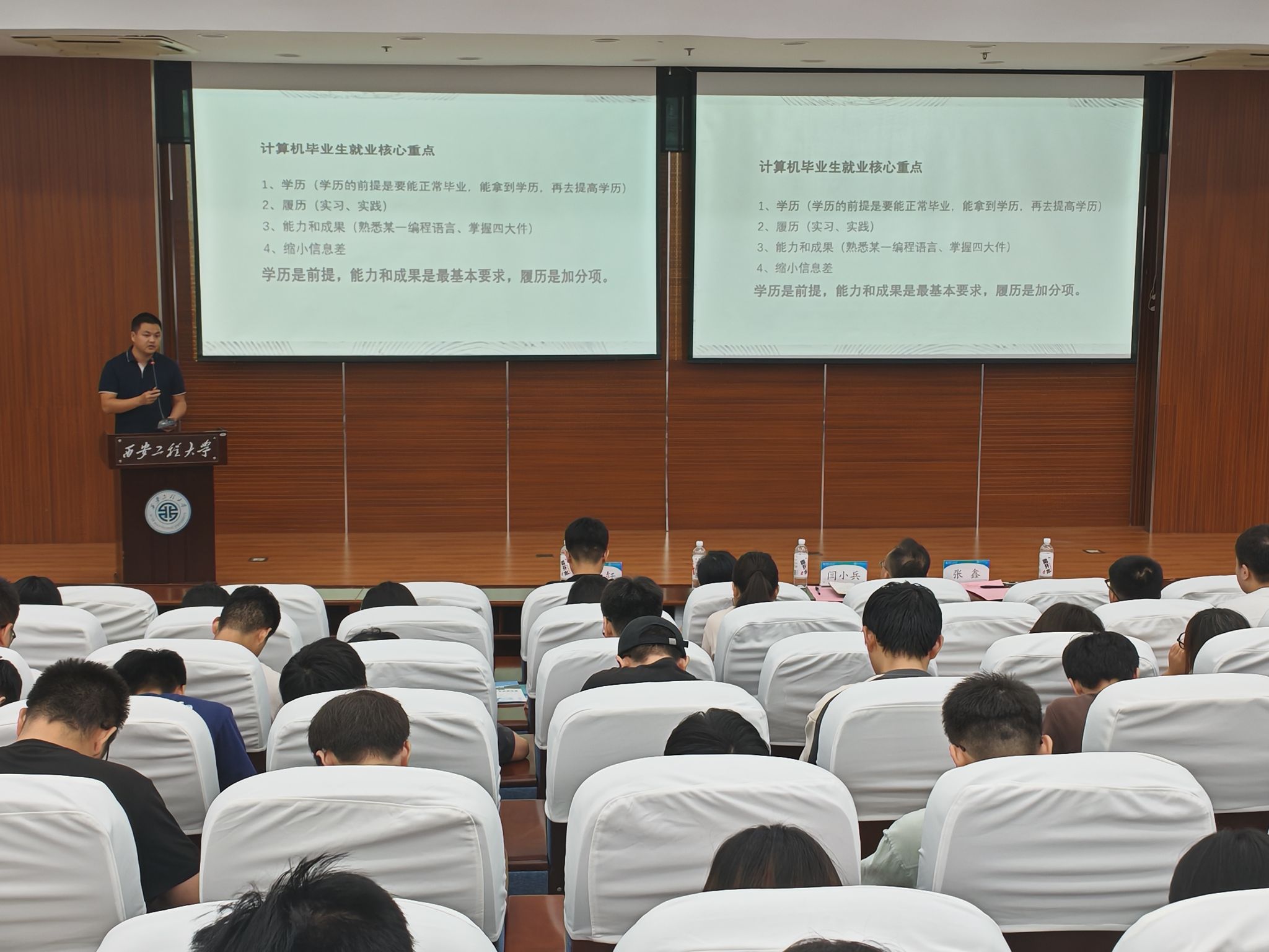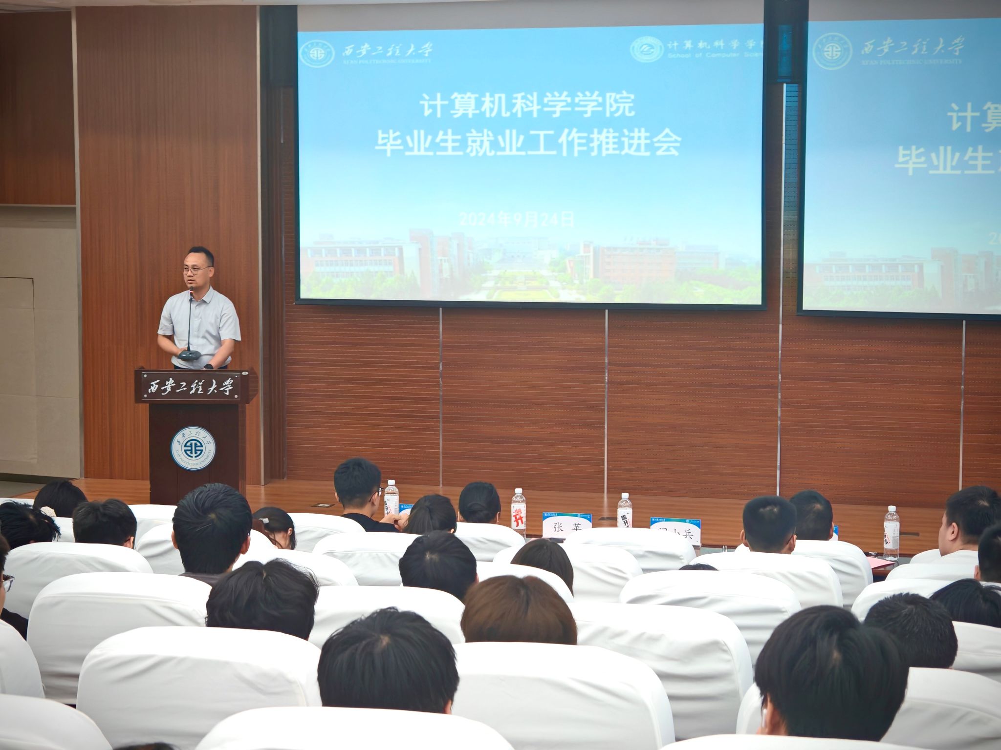 9月24日晚,美加墨世界杯官方网站在临潼校区图书馆二楼报告厅成功召开2025届毕业生“一站式”就业工作推进会。公司党委副书记(主持工作)闫小兵、学工办主任张苹、2021级辅导员张鑫、23级研究生白雨轩、21级全体毕业生参会,会议由毕业班辅导员张鑫主持。