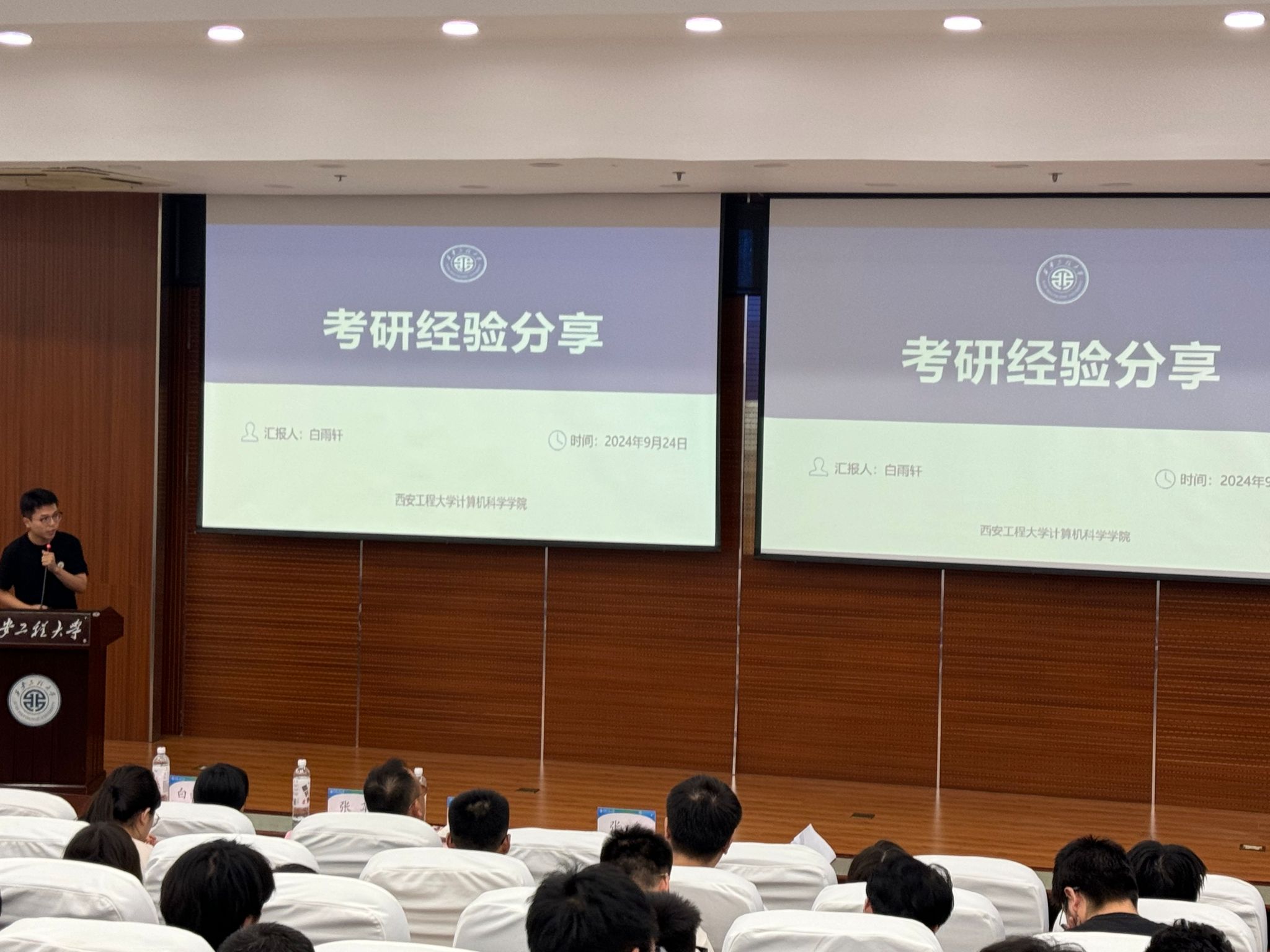 接着,白雨轩分享了自己的考研经历。以自身考研历程为切入点,详细讲述了自己在备考过程中的奋斗与坚持。他分享了如何制定科学合理的学习计划,如何高效地利用时间,以及如何应对备考过程中遇到的各种困难和挑战。