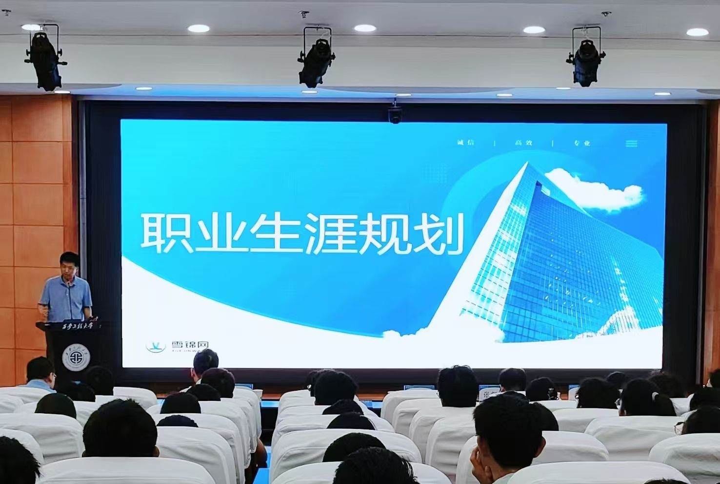 为了积极推进公司“IT青年成长空间”“一站式”员工社区建设,帮助员工明确职业方向,规划未来发展,营造良好的学习氛围,2024年9月19日下午,美加墨世界杯官方网站特邀鸿蒙信创技术有限公司总经理白三庆在临潼校区图书馆1楼报告厅开展职业生涯规划专题讲座。鸿蒙信创技术有限公司人力资源总监陈明媚、公司党委副书记(主持工作)闫小兵、副经理张凯兵、学工办主任张苹、辅导员曹子凡、刘宇哲以及200余名2023级和2024级员工参加了本次活动,讲座由党委副书记赵勇进主持。
