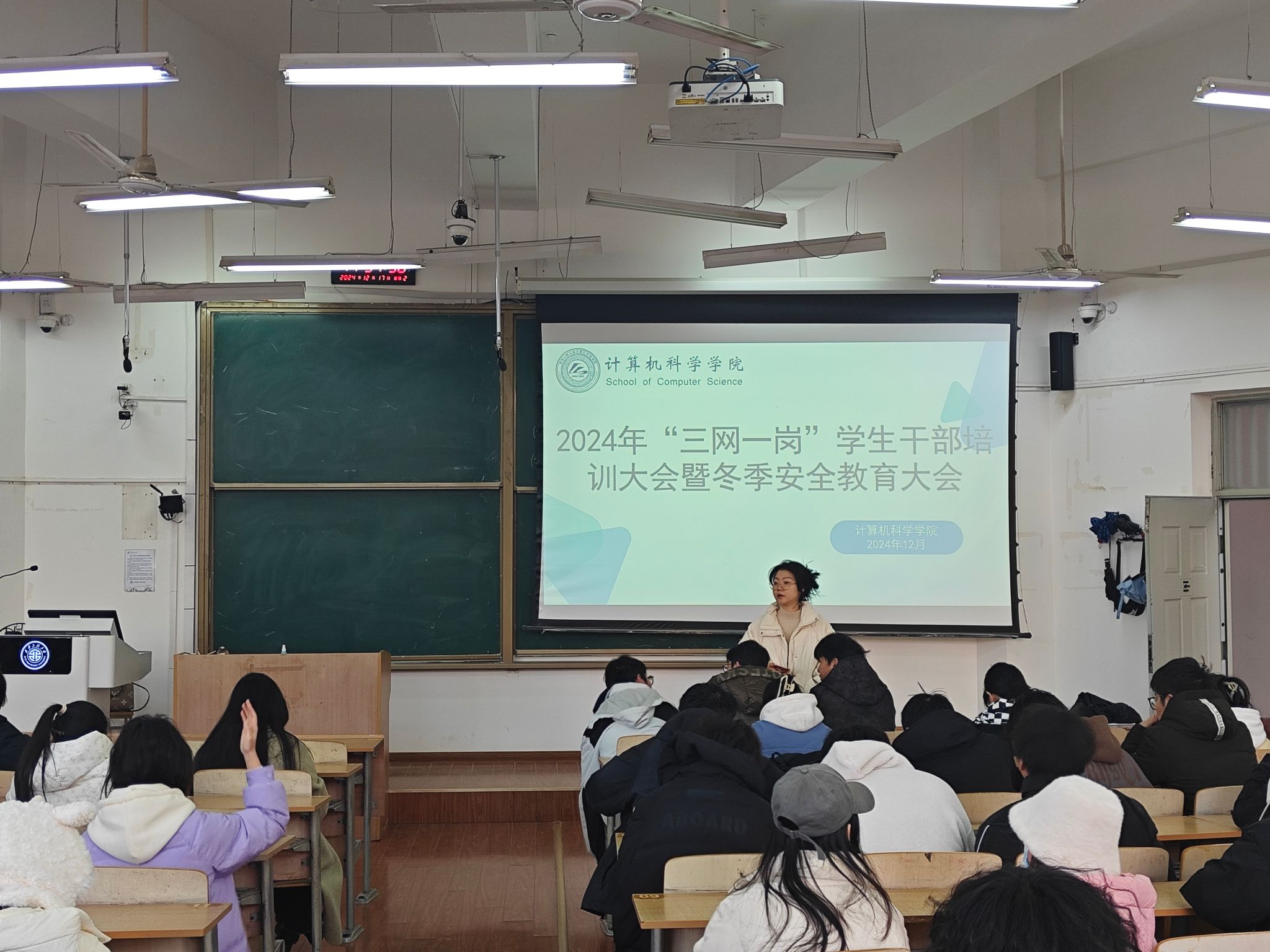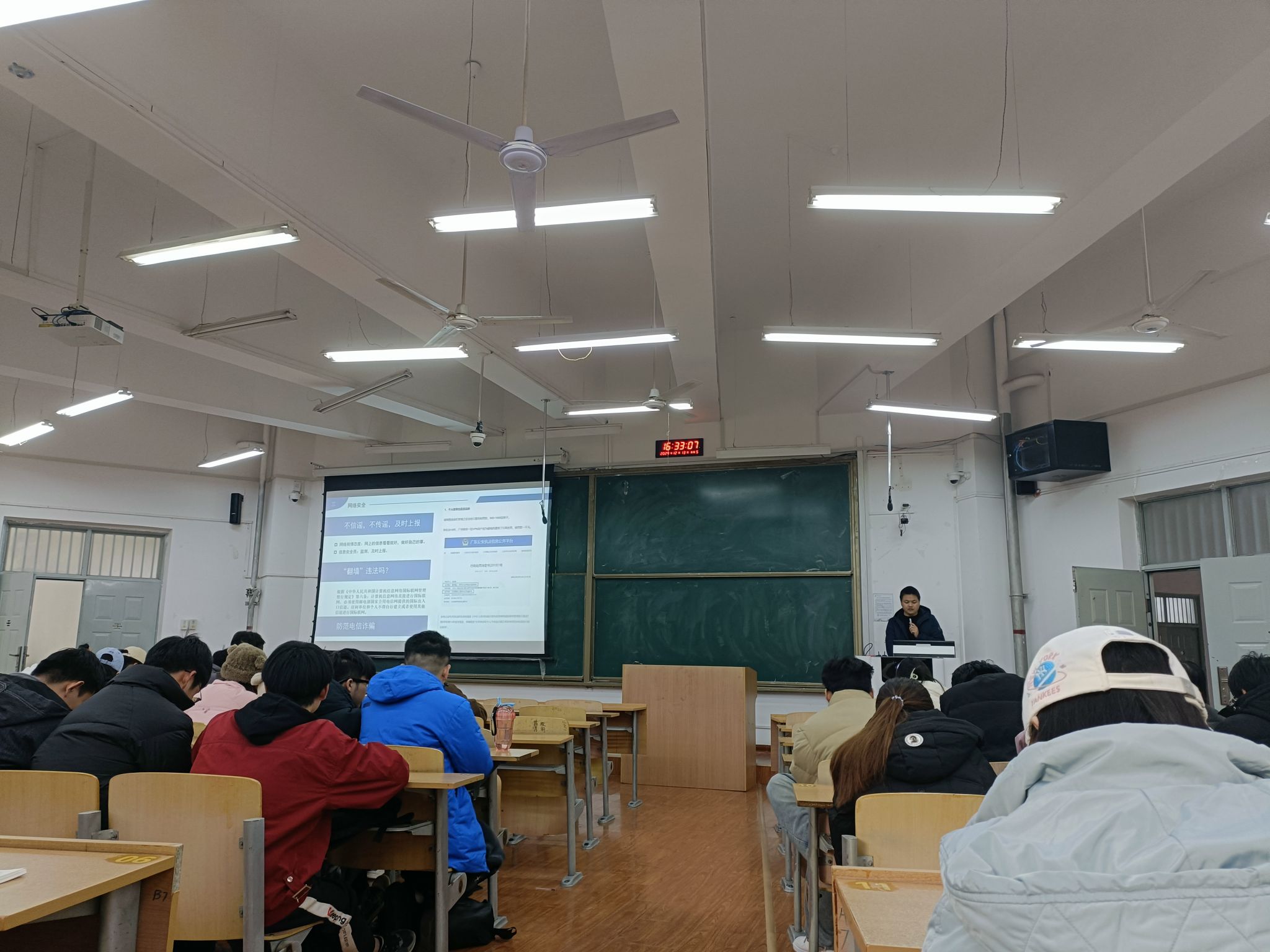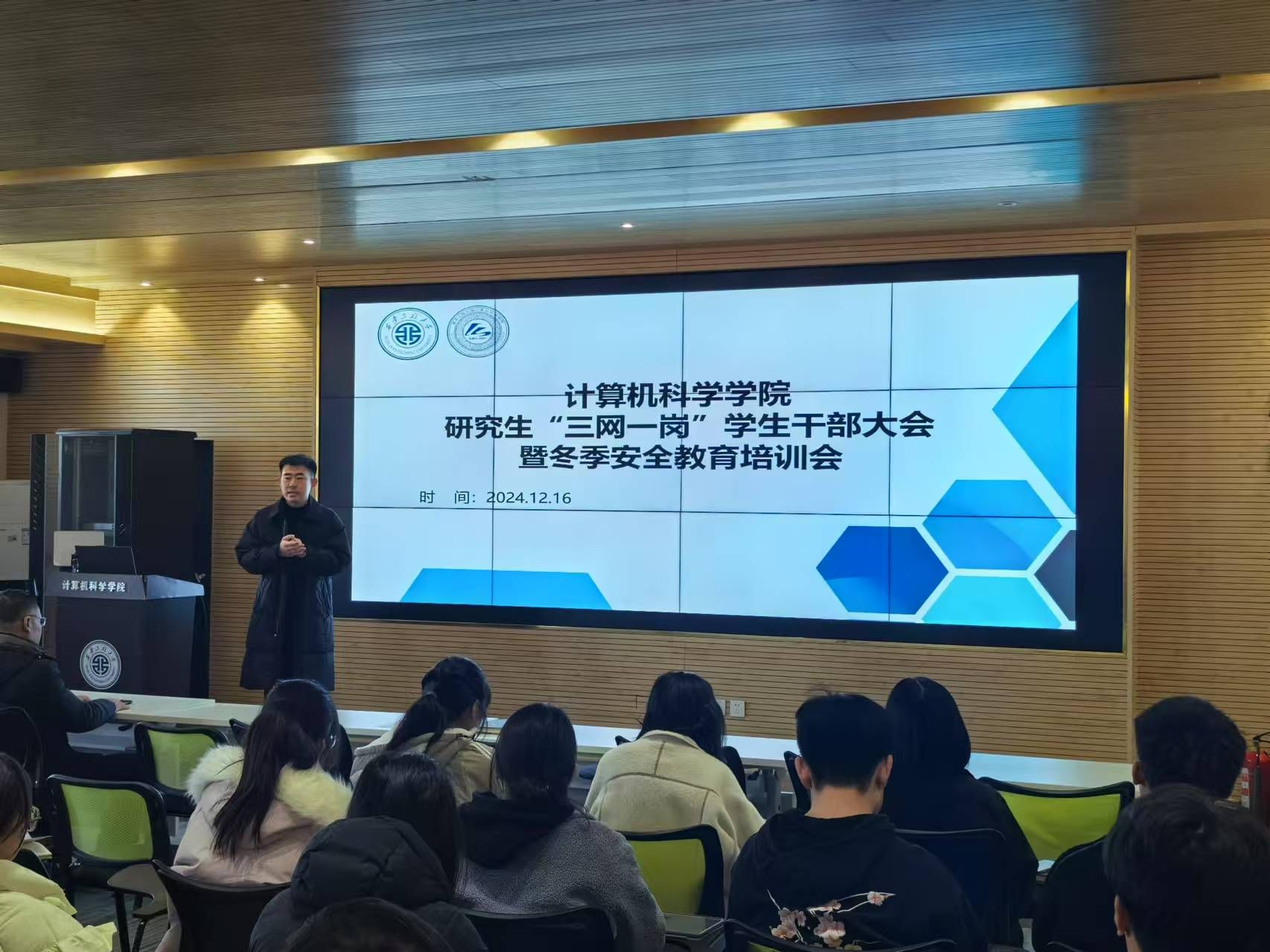 在培训会上,各年级辅导员围绕冬季校园安全薄弱环节和强化薄弱环节的紧迫性向员工安全员做出了详细讲解,并提出了具体要求。本次培训涵盖了生命安全、交友安全、心理安全、财产安全、消防安全、网络安全、交通安全等多个维度,辅导员通过活生生的案例描述、详实的数据分析、相关法律法规和校纪校规的解读,为员工上了一堂深刻实用的安全教育课。在心理健康方面,心理辅导员程帅着重强调了安全员在员工心理健康维护中的重要作用,鼓励同学们主动学习心理健康知识,树立生命最可贵的理念,增强发现问题的敏锐性,勇于向需要帮助的同学伸出援手,遇到风险度较高的问题要第一时间向辅导员报告。各年级辅导员就突发事件的应急处理流程向大家做了详尽讲解,特别提醒安全员们在面对紧急情况时,要第一时间联系辅导员,保持冷静、迅速反应、有效行动。辅导员还就诚信考试和员工的人际交往等问题和与会员工进行了讨论,并强调了有关注意事项。
