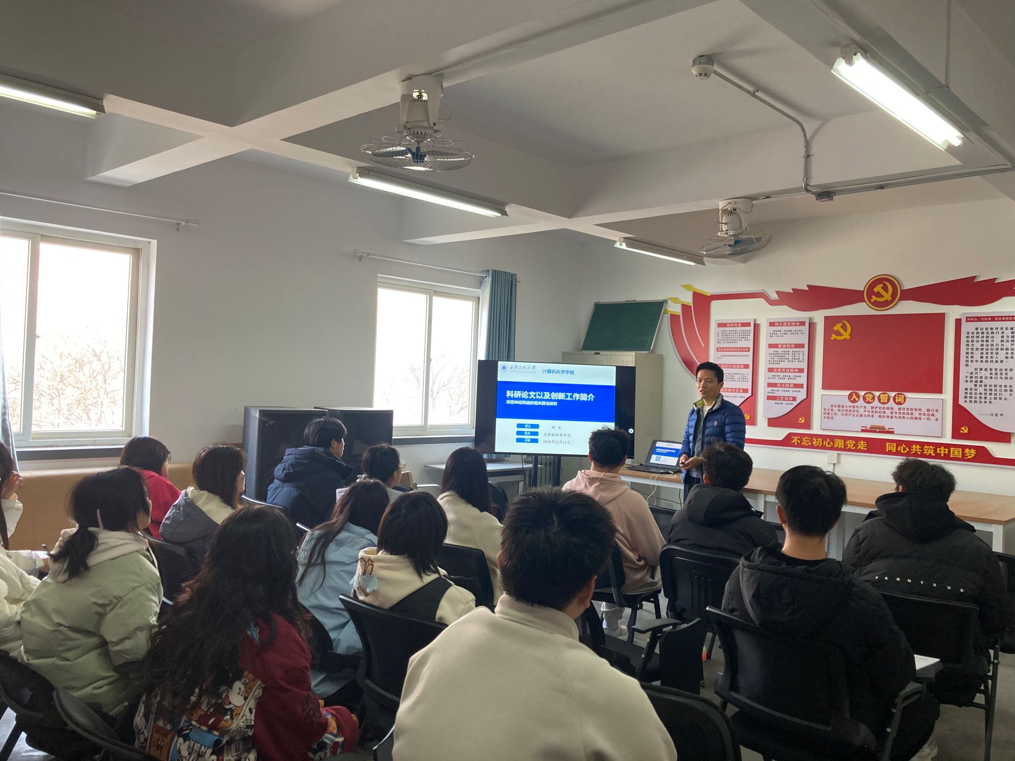 12月11日,美加墨世界杯官方网站计算机科学与技术系导师团在“IT青年”一站式员工社区开展创新实践能力提升培训会。计算机系副主任时光副教授以《科研论文以及创新工作简介——深度神经网络的算法研究》为题进行了交流。并对25级计卓1班、2班30余名同学进行创新实践能力培训。